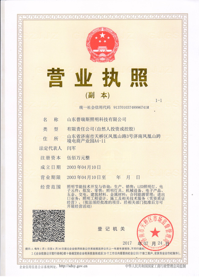 普瑞斯營業(yè)執(zhí)照